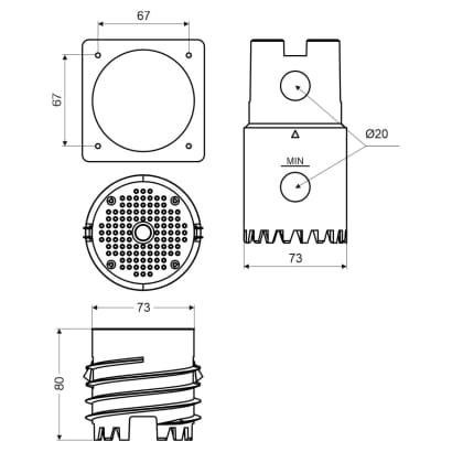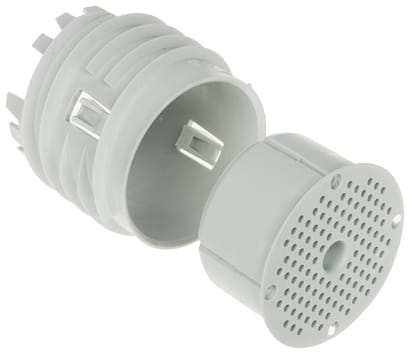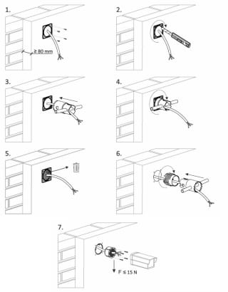 Placa de montagem para instalação de dispositivos elétricos (ex.: iluminação externa, sensores de movimento, etc.) em fachadas de edifícios com isolamento térmico e camada isolante de pelo menos 80 mm de espessura. A placa de montagem é adequada para fachadas de poliestireno e lã mineral. Construção durável.